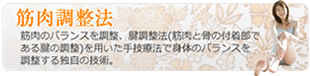 totonoeの手技療法は、筋肉を直接的に「もみほぐす」ものではなく、筋肉と骨のつなぐ付着部(腱)に働きかけることにより、間接的に筋肉をゆるめ骨格を本来の正しい位置に戻し、全身のバランスを整えていゆきます。